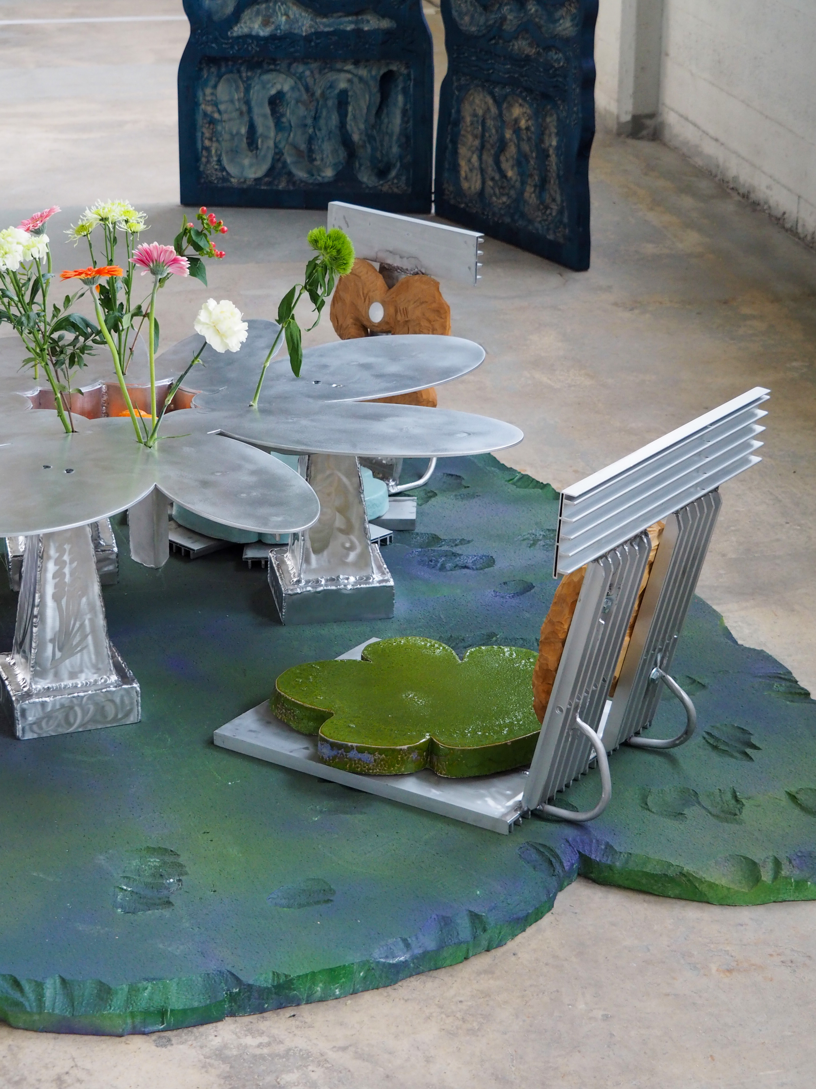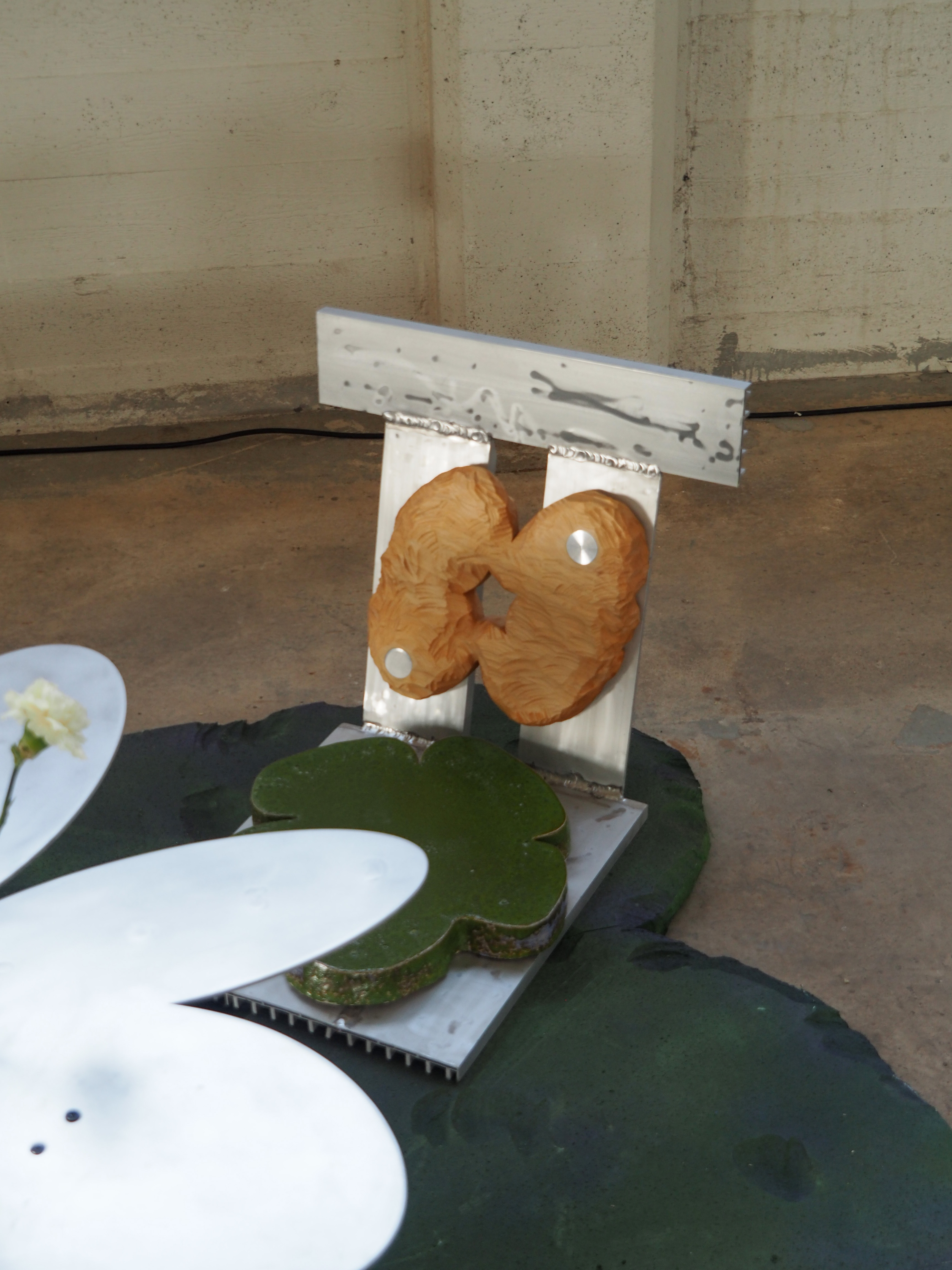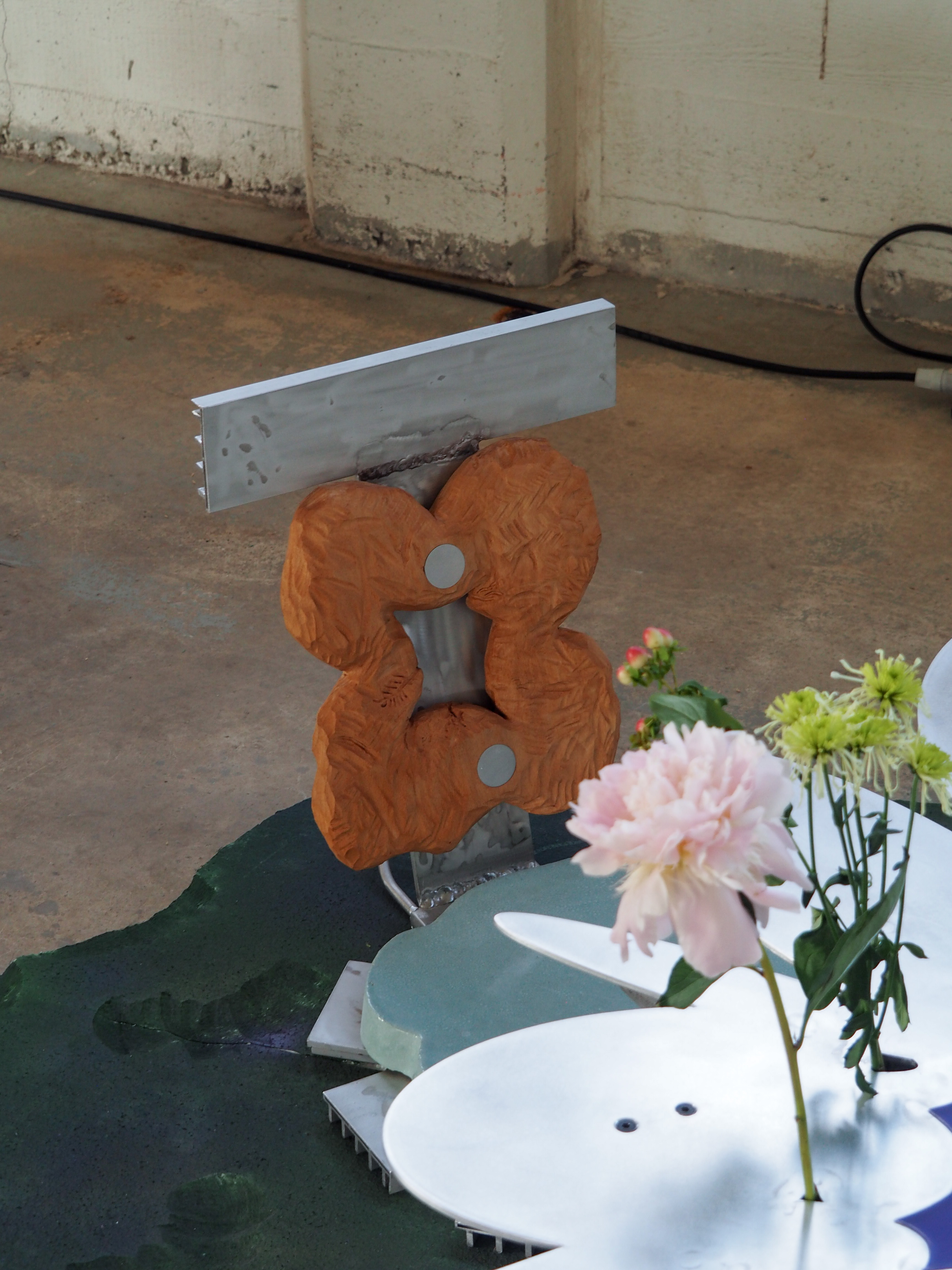 Pyeori Jung (NL/KR) introduces a series of furniture that shows the potentiality of mixing private and public terrain by implying, breaking, and literally hybridizing the functionality of the objects. His objects perform as a mirrored image of human fantasy and disturb our predetermined perception of the marginal border between organic (nature) and biologic (human) matters.